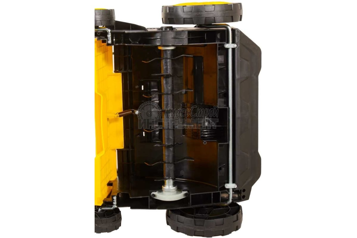 Облегченные колеса большого диаметра и эргономичная рукоятка облегчают перемещение изделия по газону