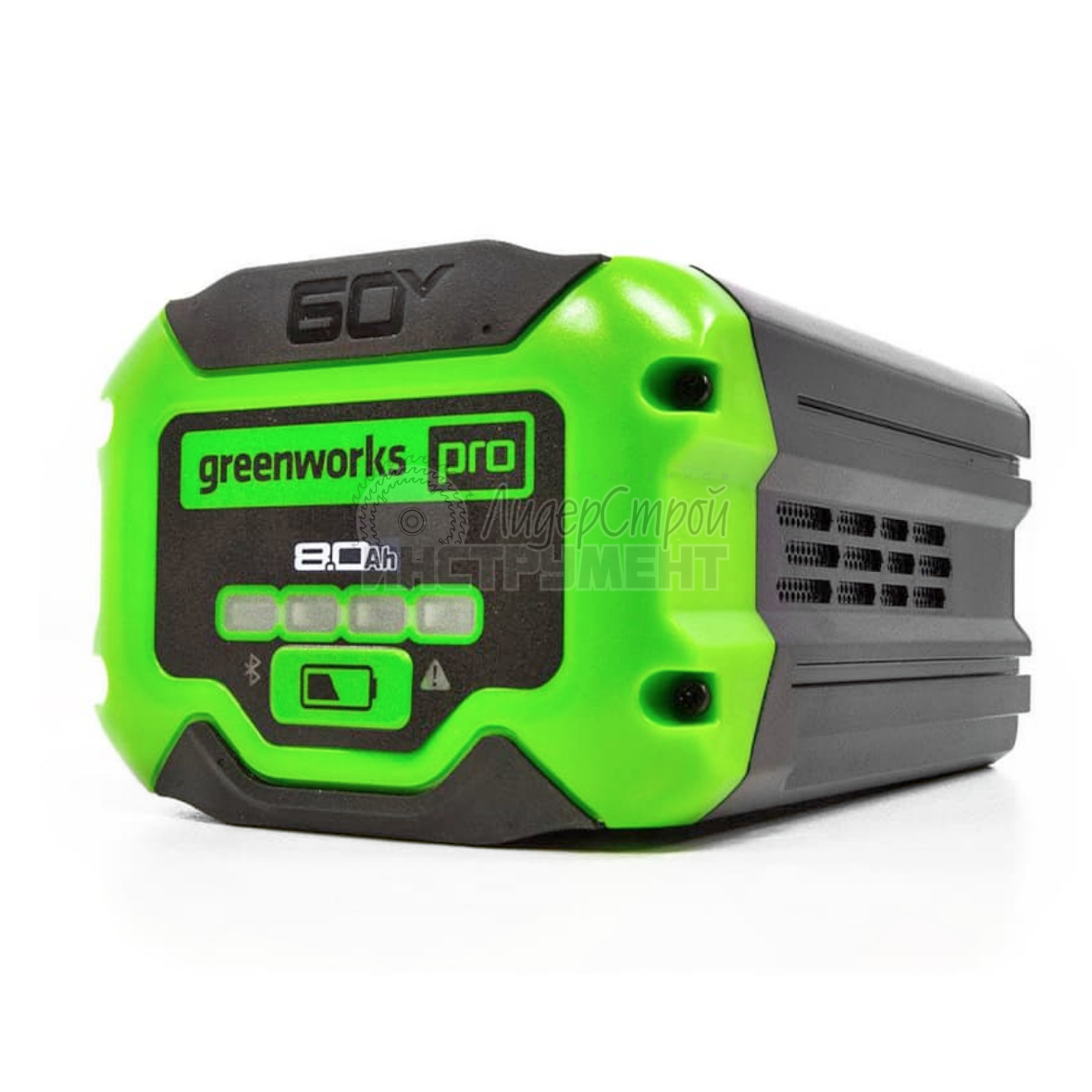 Литий-ионная аккумуляторная батарея Greenworks G60B8 (арт. 2954507) ёмкостью 8 А*ч принадлежит к универсальной аккумуляторной платформе Greenworks 60V PRO. Поставляется без зарядного устройства (ЗУ), которое приобретается отдельно.