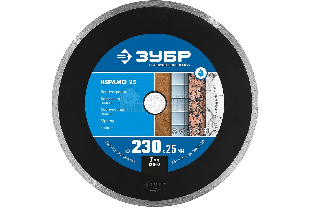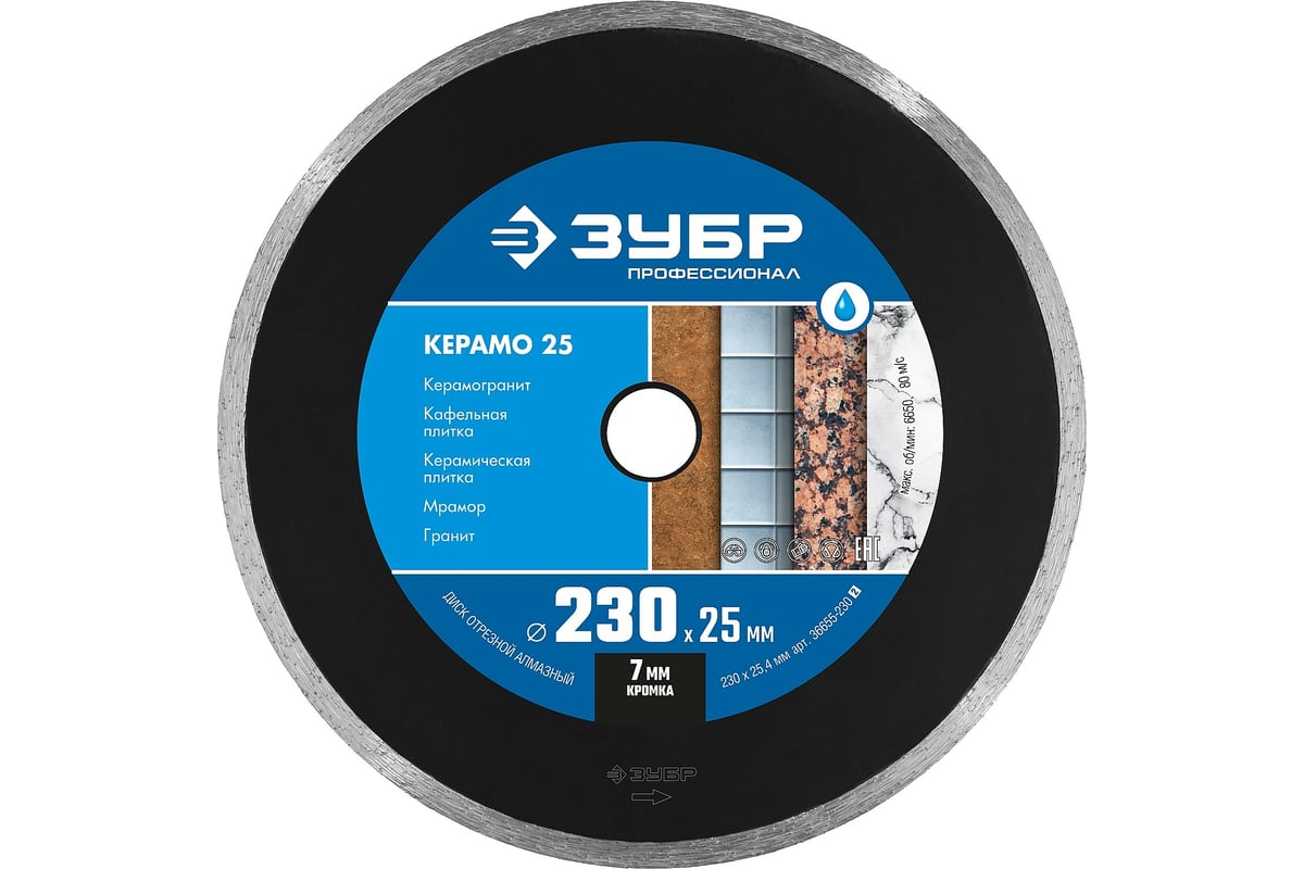 Отзывы: диск алмазный сплошной 230х7х2,4х25,4мм зубр керамо-25 36655-230_z02 в Уфе