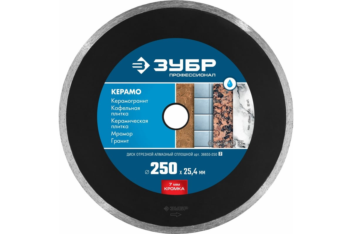 Отзывы: диск алмазный сплошной 250х7х2,6х25,4мм зубр керамо-25 36655-250_z02 в Уфе