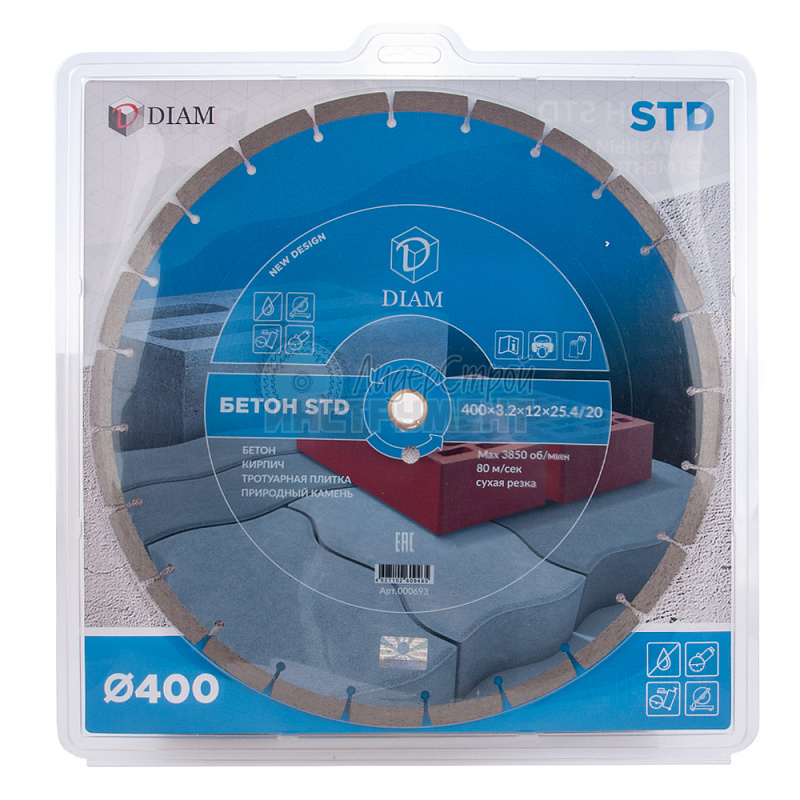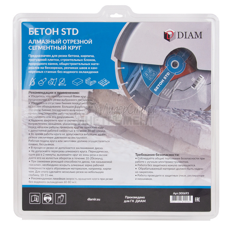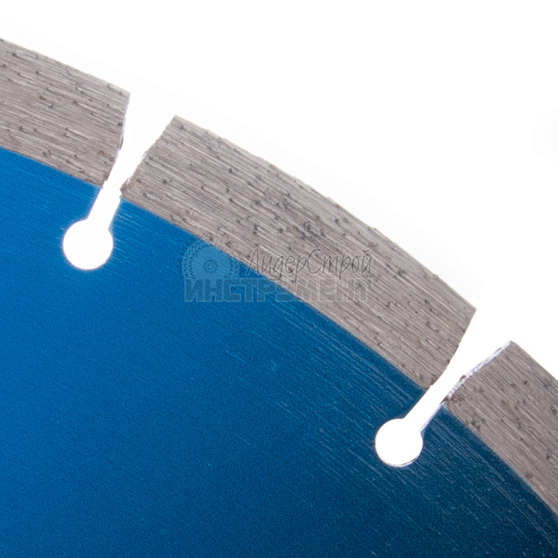 Продолжительный ресурс работы обеспечивается высокой концентрацией алмазного порошка в оптимально подобранной связке. Благодаря наличию «прорезей» сегментов в диске процесс обработки осуществляется с эффективным выбросом продуктов резания. Диск используется при сухой резке бетона, железобетона, мрамора.