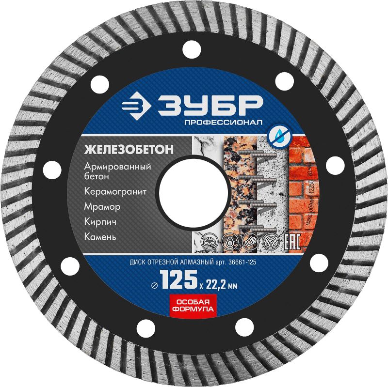 Отзывы: круг алмазный turbo 125х22мм зубр профи железобетон 36661-125 в Уфе