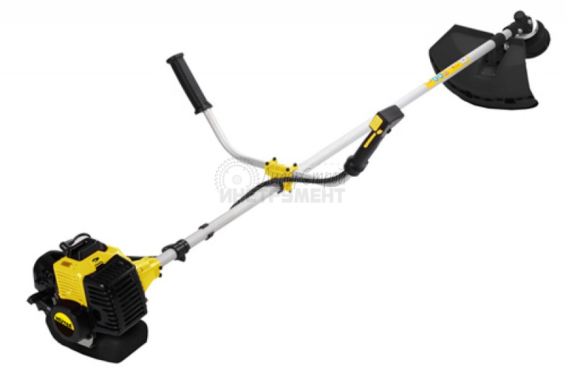 Инструмент для резки — косильная головка AutoCut C5-2. Форма штанги — изогнутая. Ширина обработки — 25,5 мм. Объём топливного бака - 0,33 л.