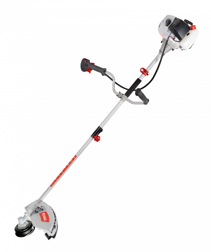 Электронное зажигание, регулируемая ручка и ранцевый ремень в комплекте обеспечивают комфорт и минимум напряжения при работе. Оснащена защитным кожухом для предотвращения попадания травы в оператора.