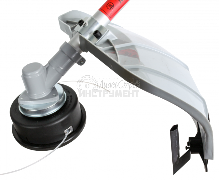 Четырехлопастной нож, входящий в комплект, качественно обрабатывает даже жесткую траву. Косильная головка с леской с легкостью достает до труднодоступных мест.