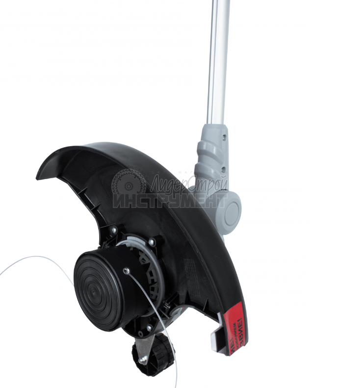 Четырехлопастной нож, входящий в комплект, качественно обрабатывает даже жесткую траву. Косильная головка с леской с легкостью достает до труднодоступных мест.