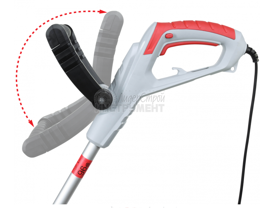 - Ручка с выключателем способствует лучшему удержанию инструмента, а также обеспечивает комфортное управление электрическим триммером
