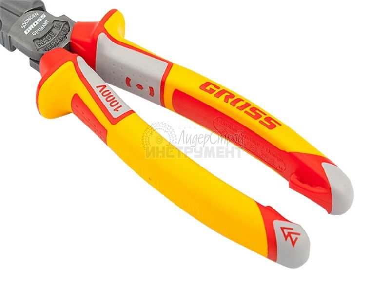 Бокорезы торговой марки GROSS относятся к режущему электромонтажному инструменту. Предназначены бокорезы для разрезания проводов, проволоки, металлических стержней и пр. Ребра жесткости на внешней стороне инструмента делают конструкцию более прочной. Смещение шарнира к режущим кромкам увеличивает эффективность реза на 20 процентов. Нижние части рукояток оснащены дополнительными упорами, на которые можно установить пружину для автоматического разжима либо скобу с подвесом. Бокорезы общей длиной 180 мм изготовлены из высококачественной конструкционной стали твердостью 62 HRC. На металлическую основу инструмента нанесено специальное антикоррозийное покрытие Titan finish. Диэлектрические трехкомпонентные рукоятки позволяют использовать инструмент в электрической сети под напряжением до 1000 В, что соответствует стандартам VDE, IEC 60900. Подвесная карта обеспечивает удобное размещение на стенде. На бокорезы распространяется пятилетняя гарантия.