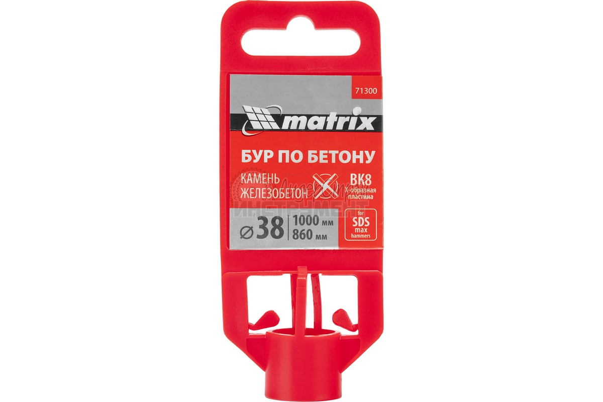 Бур по бетону Matrix с хвостовиком SDS MAX и крестовой пластиной, — оснастка для перфораторов высокой мощности, предназначенная для получения отверстий диаметром 40 мм в стенах, полах, перекрытиях.