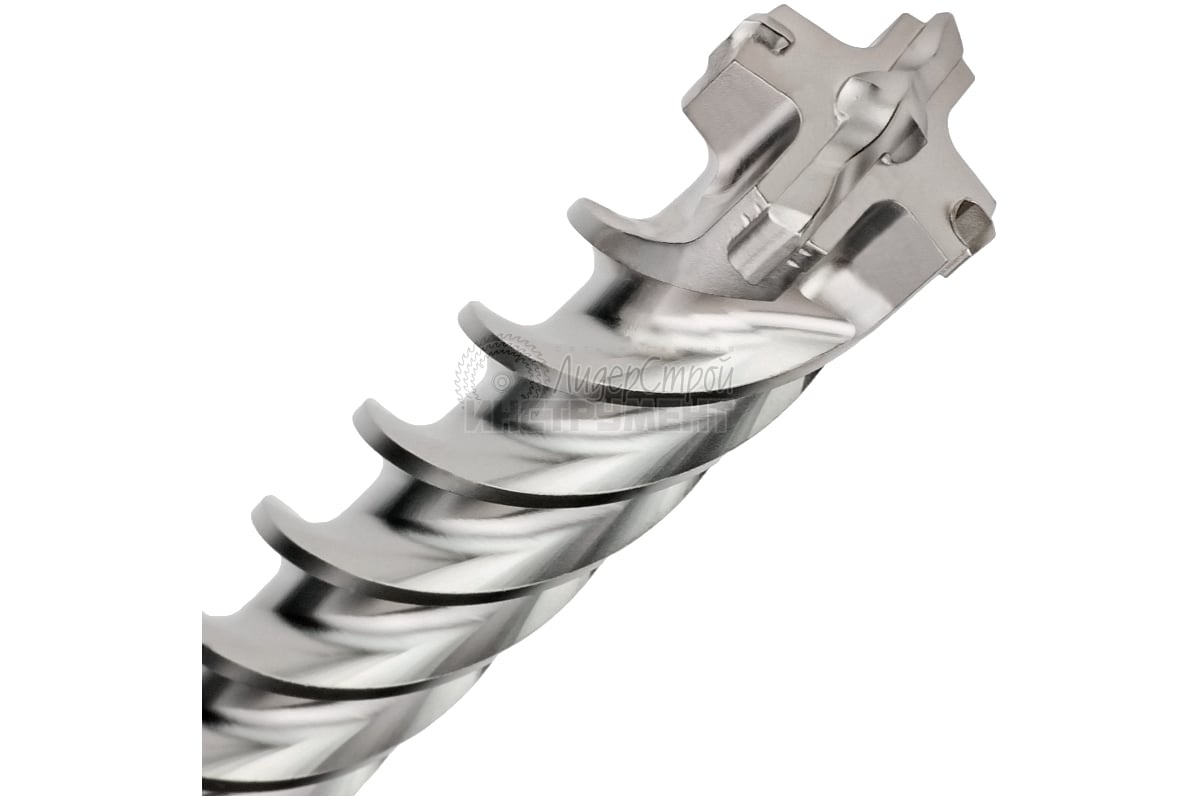 Отличительными элементами этих буров является крестовая твердосплавная пластинка из ВК8, четыре резца которой позволяют более четко удерживать инструмент в отверстии, а также повышают его стойкость по сравнению с двухкромочным. В то же время дополнительные резцы несколько занижены по диаметру, чтобы не вызывать заклинивания. Хвостовик SDS max подразумевает использование с тяжелыми перфораторами, оснащенными соответствующими патронами. Корпус буров выполнен из качественной стали, которая после термообработки получает свойства, помогающие противостоять сложным динамическим нагрузкам, возникающим в процессе ударного сверления.