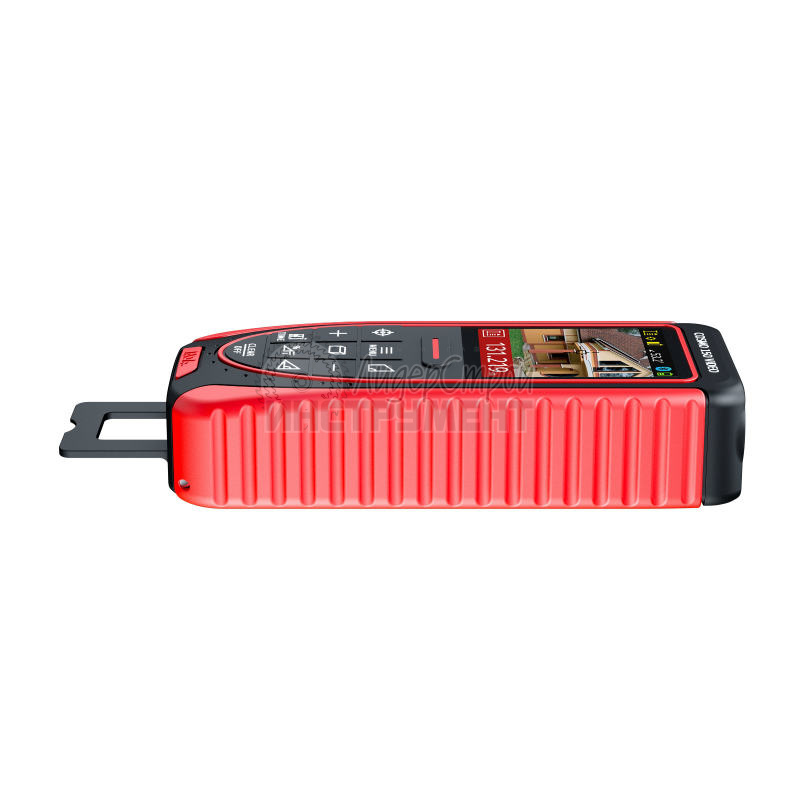 Для измерения из углов и щелей модель оснащена откидной скобой.