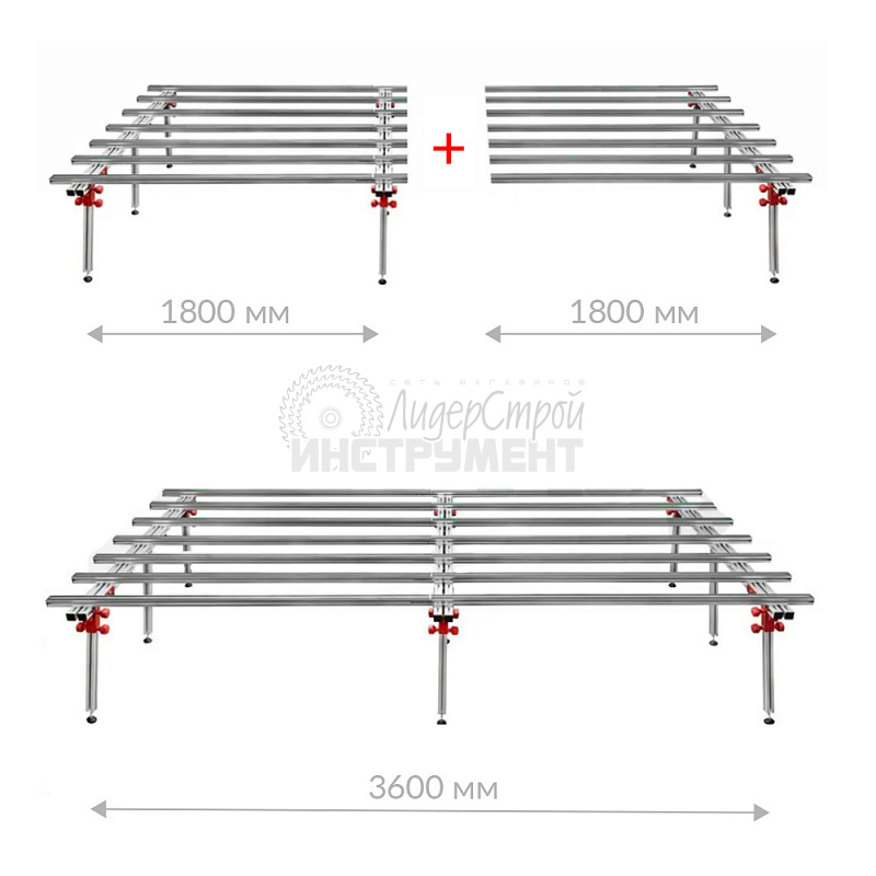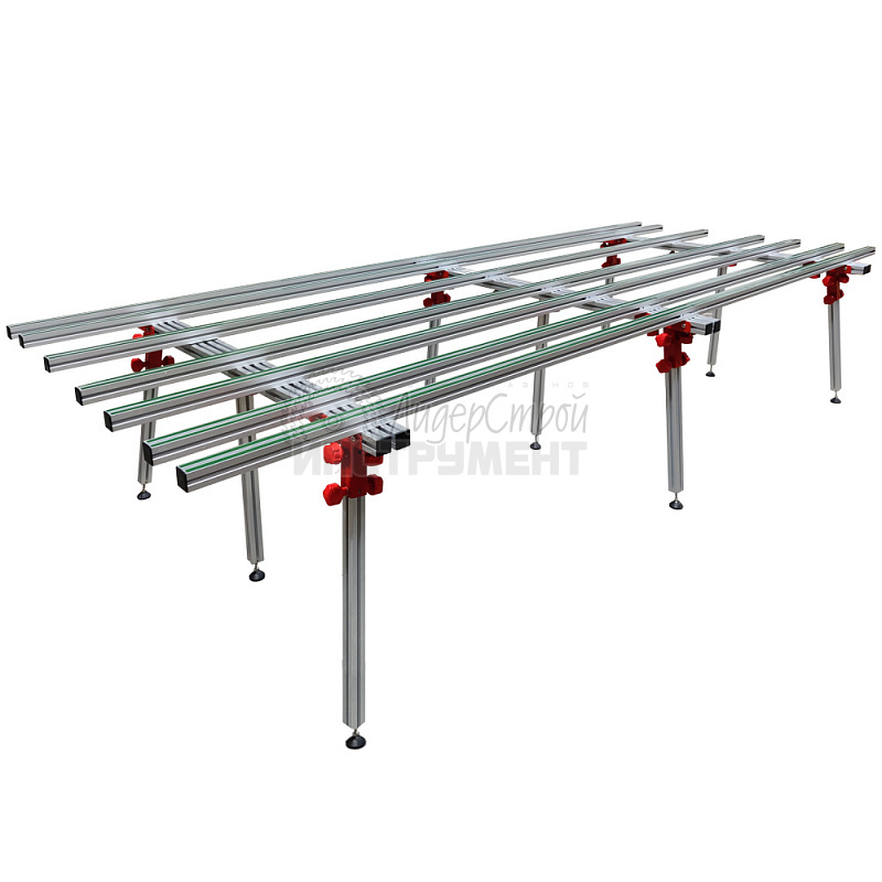 Рабочий стол "DIAM" (арт. 600125) - легкий универсальный стол из алюминиевого профиля, для удобства работ при раскройке  крупноформатной плитки, гипсокартона и других отделочных материалов. Важной особенностью данного стола является его конструкция, которая состоит из полноценного стола и приставки к нему. Основной стол имеет длину 1800 мм, но при использовании приставки её можно увеличить до 3600мм. Высота: 700-780мм (регулируется), ширина: 1500мм, длина: от 1800мм до 3600мм. Максимальная нагрузка составляет до 200кг.