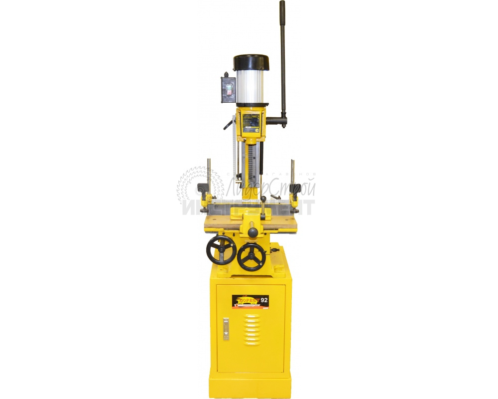 Корвет-92 размещен на массивной металлической тумбе с удобным ящиком для хранения расходников. Агрегат отлично подойдет для производственных нужд. Используется для пазования, изготовления соединений, многофункциональной обработки дерева.