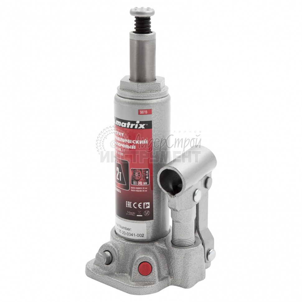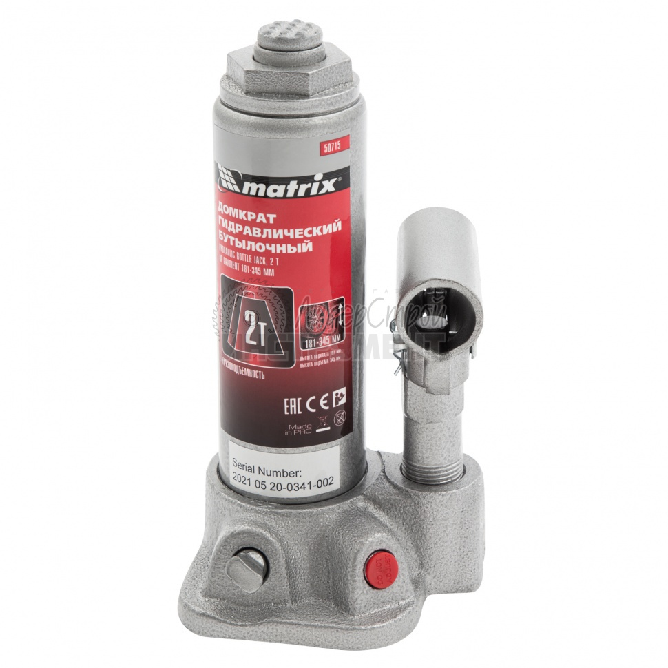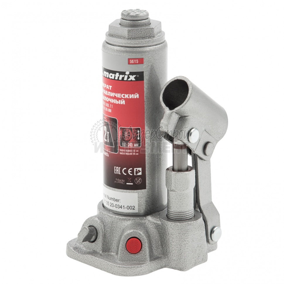 Домкрат гидравлический бутылочный 2т 181-345мм MATRIX 50715 50715 купить по цене 1 480 руб - интернет-магазин ЛидерСтройИнструмент