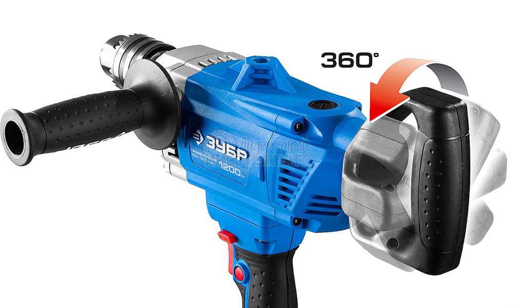 Реверсирование вращения помогает как извлекать сверла из глубоких отверстий, так и менять направление перемешивания простым переключением рычажка