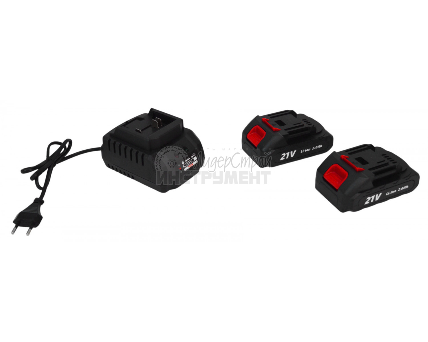 Два аккумулятора, зарядное устройство, переходник, насадки и удлинитель для насадок входят в комплект. Поставляется в кейсе.