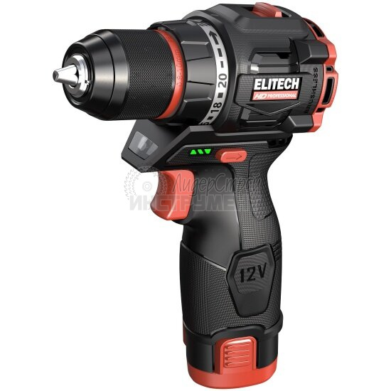 Дрель-шуруповерт аккумуляторная ВИХРЬ ДА-12Л-2К вкручивает крепёжные элементы и сверлит отверстия, а также выворачивает крепёж за счёт реверсивного хода. Предусмотрены две скорости редуктора с регулируемым количеством оборотов до 350 и 1250 в минуту. Крутящий момент с предельным значением 20 Нм регулируется 18 ступенями в зависимости от типа обрабатываемого материала.