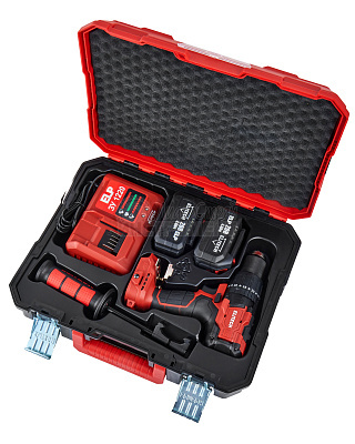 Дрель-шуруповерт ударная аккумуляторная, АКБ 2х4Аh, ЗУ, дополнительная рукоятка, поясная клипса, инструкция