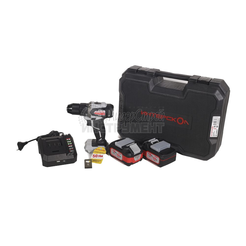 Два аккумулятора, зарядное устройство, переходник, насадки и удлинитель для насадок входят в комплект. Поставляется в кейсе.