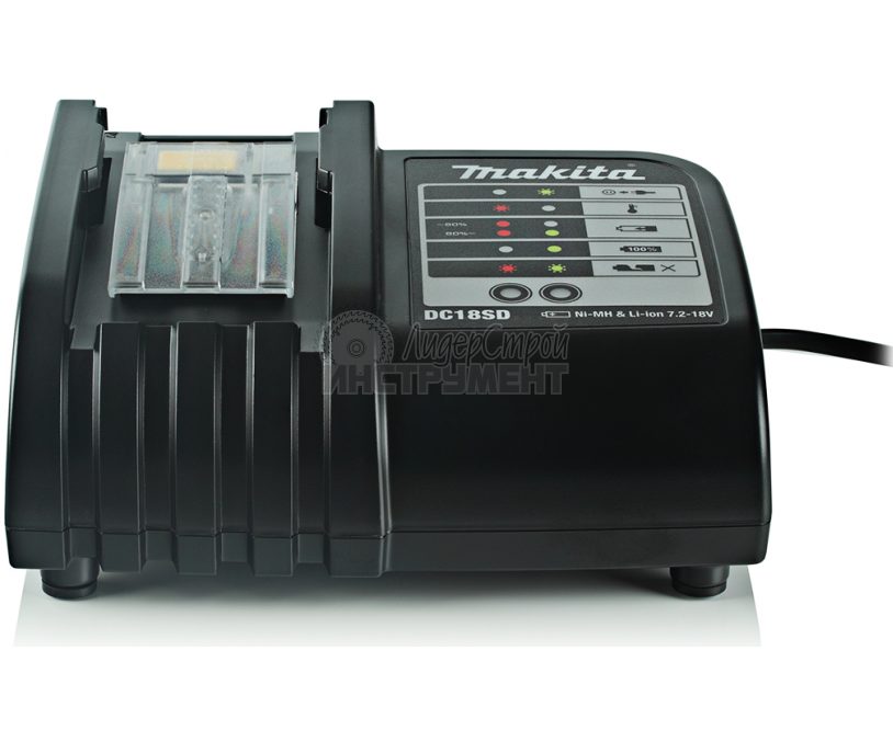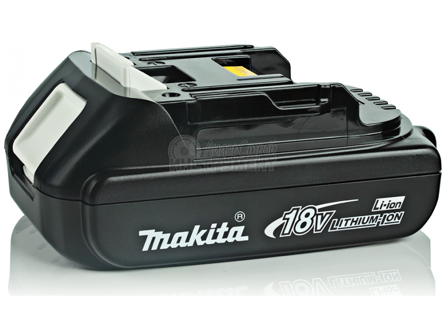 Инструмент оборудован литий-ионным аккумулятором ёмкостью 1,3 А*ч и напряжением 18 В. На заряд батареи требуется примерно час.