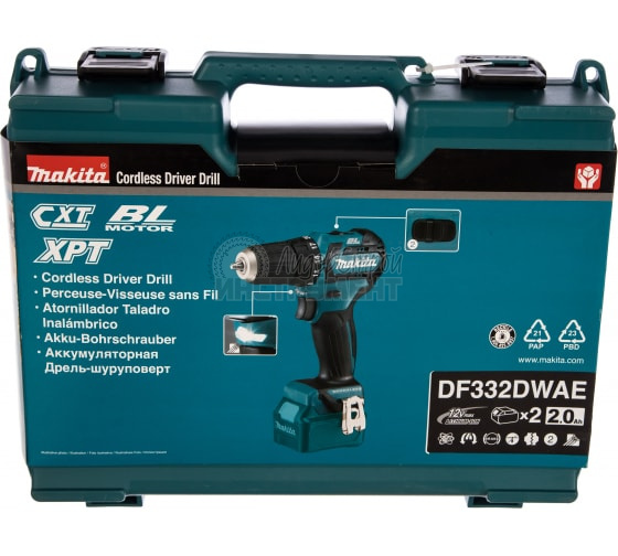 - Чемодан - для удобства хранения и транспортировки аккумуляторной дрели-шуруповерт Makita DF332DWAE.