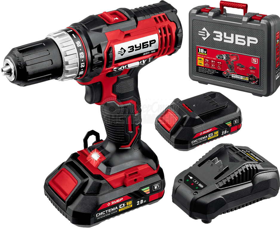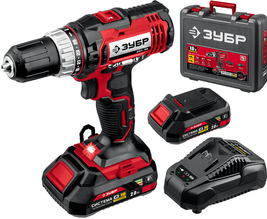 Дрель-шуруповерт аккумуляторная ЗУБР ДШЛ-185-22 2х2Ah ДШЛ-185-22 купить по цене 7 200 руб - интернет-магазин ЛидерСтройИнструмент