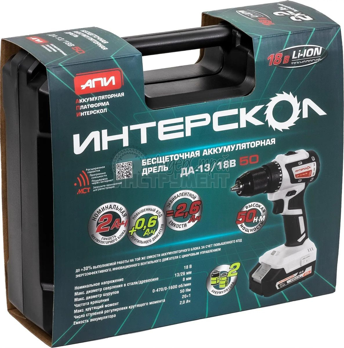 Два аккумулятора, зарядное устройство, переходник, насадки и удлинитель для насадок входят в комплект. Поставляется в кейсе.