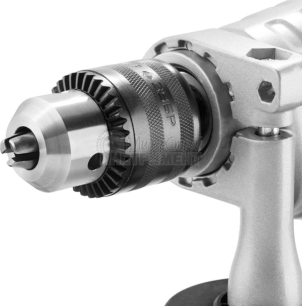 Незаменимый помощник для сверления отверстий в различных материалах (дерево, сталь и т.д.). Профессионального уровня дрель с металлическим корпусом, двухскоростным редуктором, качественным кулачковым патроном, плавной регулировкой оборотов и надежной конструкцией на подшипниках - лучший подарок мастеру.