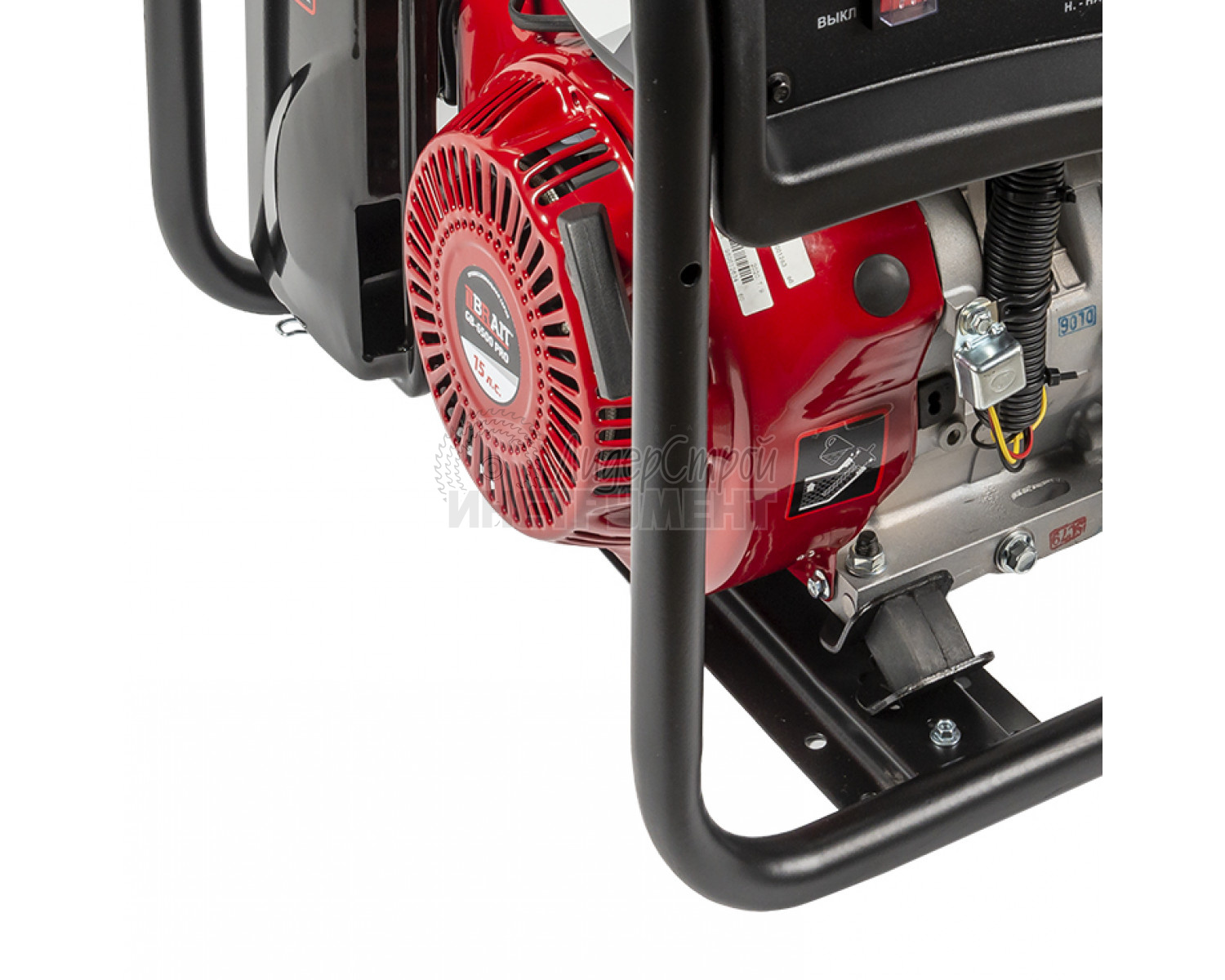 Четырехтактный бензиновый двигатель (5 кВт) отличается повышенной износостойкостью и производительностью.