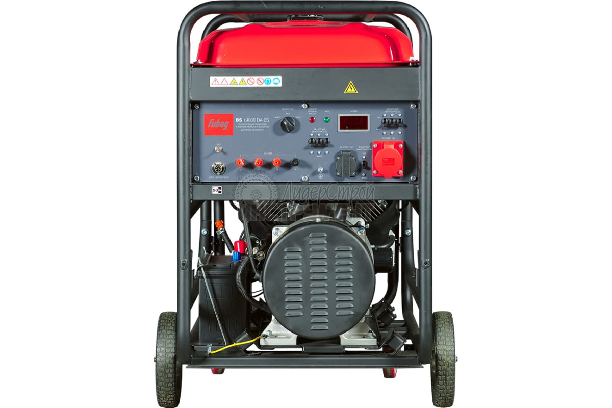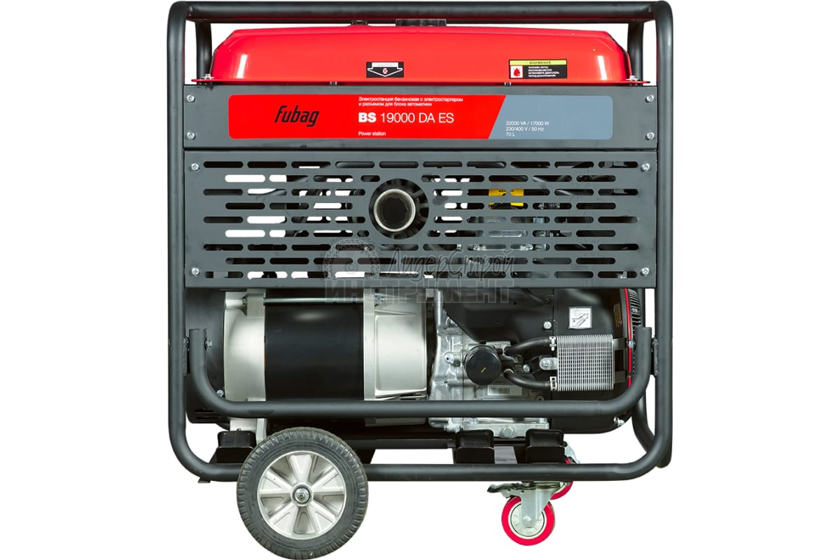 Бензиновая электростанция с электростартером и коннектором автоматики FUBAG bs 19000 da es 641060 - трехфазный генератор с электростартером. Электростанция способна обеспечивать электроснабжением частные владения, строительные площадки или небольшое производство. Высокий ресурс работы станции обеспечит профессиональный V-образный 2-х цилиндровый OHV-двигатель FUBAG. Синхронный альтернатор с медными обмотками ротора и статора оснащен системой регулировки выходного напряжения (AVR), которая гарантирует стабильное выходное напряжение и частоту тока.