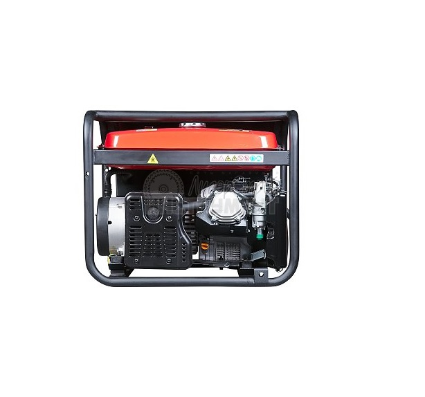 Четырехтактный бензиновый двигатель (2,8 кВт) отличается повышенной износостойкостью и производительностью. Вместительный топливный бак (12 л) обеспечивает длительную работу без дозаправки. Воздушное охлаждение деталей предотвращает скопление пыли и перегревание устройства. Системы автоматического отключения и стабилизации напряжения позволяют работать без перебоев и поломок. Металлическая рама обеспечивает защиту внутреннего механизма от повреждений.