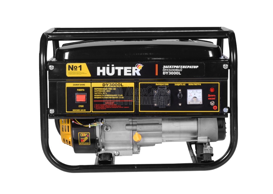 HUTER DY 2500L − бензиновая электростанция, подходит для обеспечения энергией небольшого дачного участка или стройки. Возможно подключение электроинструмента, садового оборудования, электрооборудования и оргтехники общей мощностью до 2 кВт.