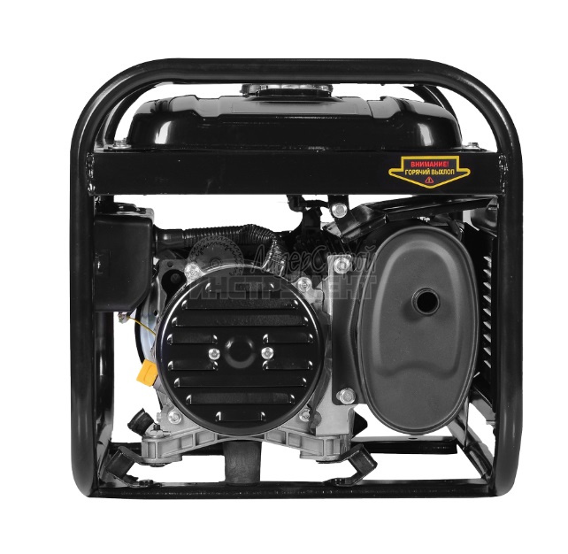Четырехтактный бензиновый двигатель (2,8 кВт) отличается повышенной износостойкостью и производительностью. Вместительный топливный бак (12 л) обеспечивает длительную работу без дозаправки. Воздушное охлаждение деталей предотвращает скопление пыли и перегревание устройства. Системы автоматического отключения и стабилизации напряжения позволяют работать без перебоев и поломок. Металлическая рама обеспечивает защиту внутреннего механизма от повреждений.