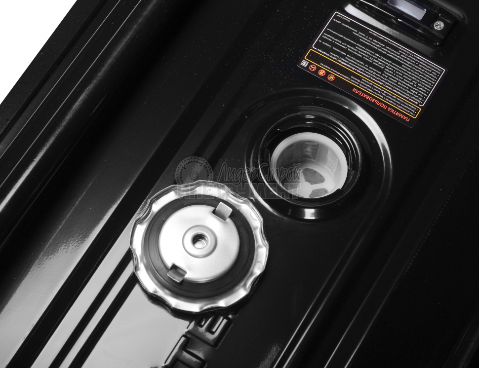 Мощность двигателя (3 кВт) и вместительный бак (15 л) позволяют работать более 10 часов подряд. На баке имеется указатель уровня топлива, что позволяет визуально контролировать его расход.