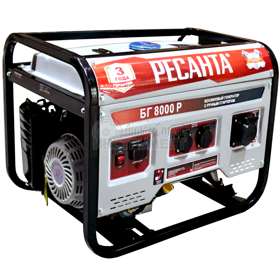 Четырехтактный бензиновый двигатель (2,8 кВт) отличается повышенной износостойкостью и производительностью. Вместительный топливный бак (12 л) обеспечивает длительную работу без дозаправки. Воздушное охлаждение деталей предотвращает скопление пыли и перегревание устройства. Системы автоматического отключения и стабилизации напряжения позволяют работать без перебоев и поломок. Металлическая рама обеспечивает защиту внутреннего механизма от повреждений.