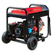 Специально спроектированный альтернатор двигателя позволяет снять равную мощность с генератора как в однофазном, так и в трехфазном режиме работы. Выбор режима осуществляется переключателем на передней панели. Топливный бак 12,5 л обеспечивает непрерывную работу без дозаправки в течение 10 часов при 75% нагрузке. Электростартер с бортовым аккумулятором позволяет быстро запустить дизельный двигатель.