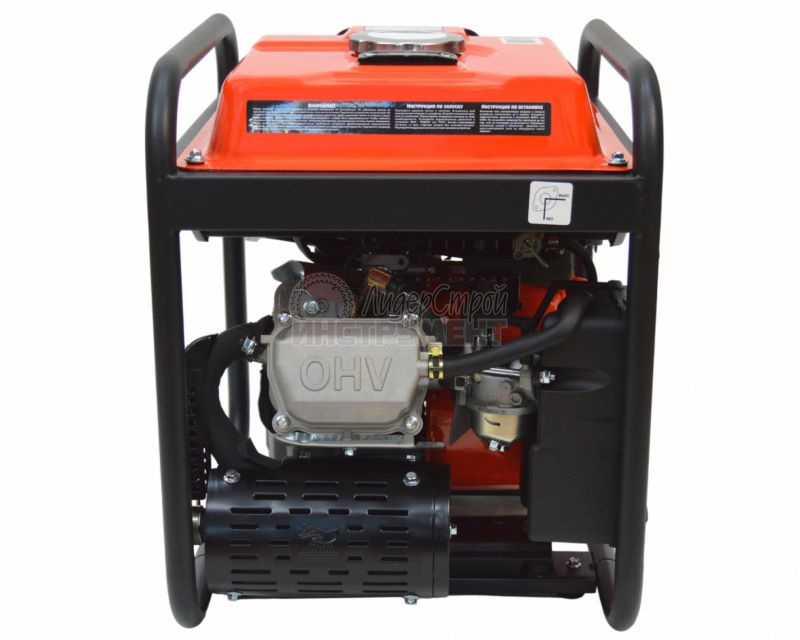 Четырехтактный бензиновый двигатель (2,8 кВт) отличается повышенной износостойкостью и производительностью. Вместительный топливный бак (12 л) обеспечивает длительную работу без дозаправки. Воздушное охлаждение деталей предотвращает скопление пыли и перегревание устройства. Системы автоматического отключения и стабилизации напряжения позволяют работать без перебоев и поломок. Металлическая рама обеспечивает защиту внутреннего механизма от повреждений.
