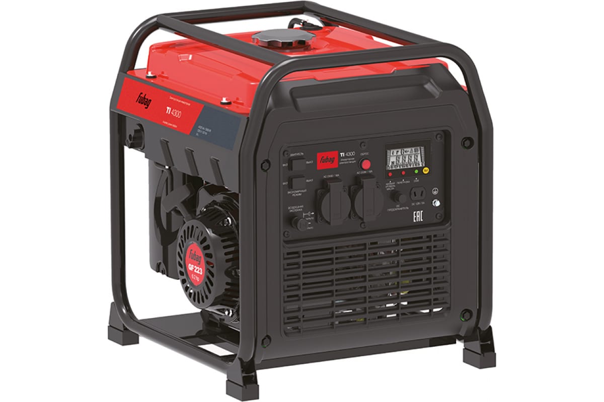 - Ток идеального качества, помехоустойчивость, электронная регулировка позволяют подключать к FUBAG TI 4300 открытая, 641025 самую требовательную технику и электронику