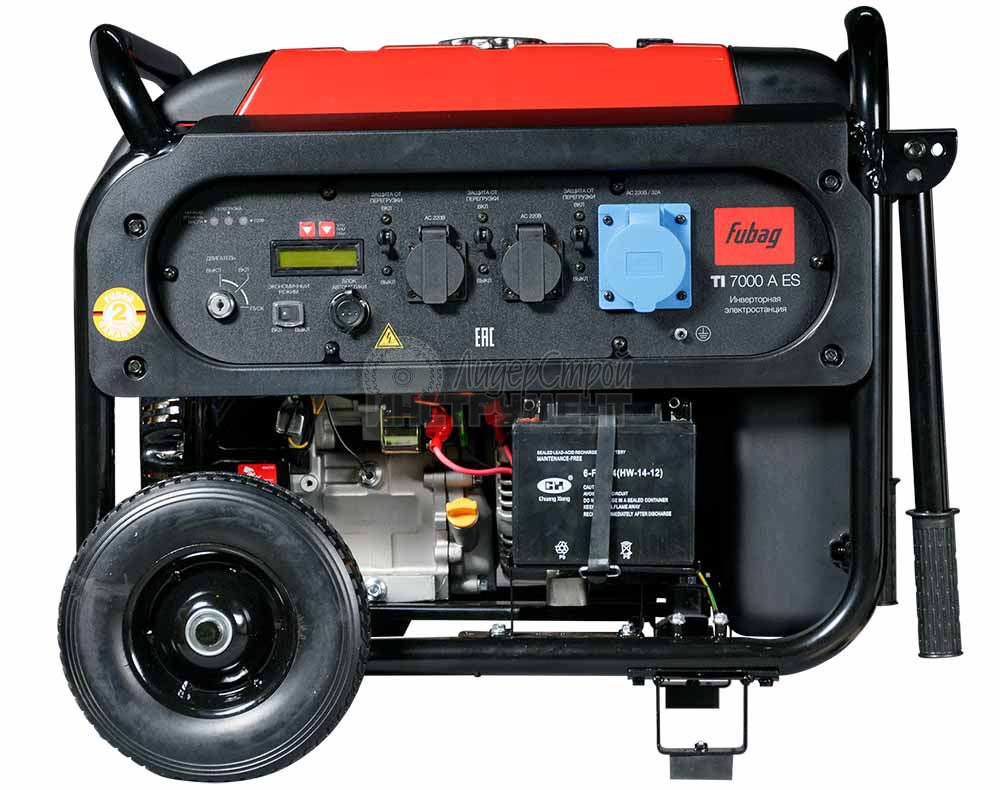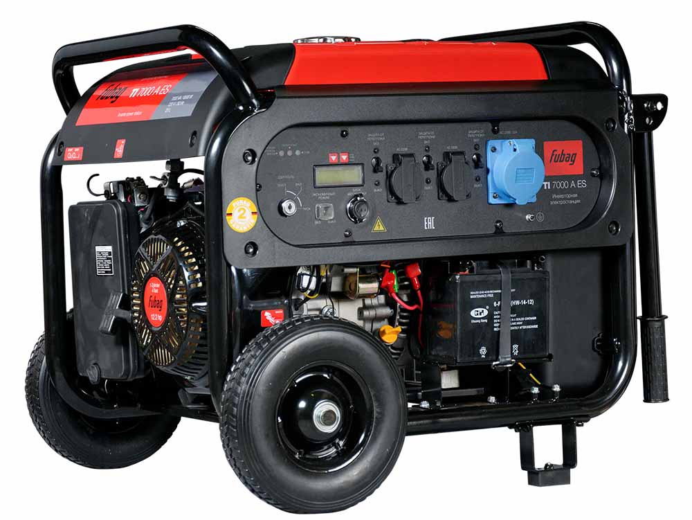 FUBAG TI 7000 A ES - мощная электростанция для аварийного подключения приборов на строительной/ремонтной площадке, в загородном доме и на других объектах. Оборудована четырехтактных двигателем на бензине, электростартером и ручным пуском.