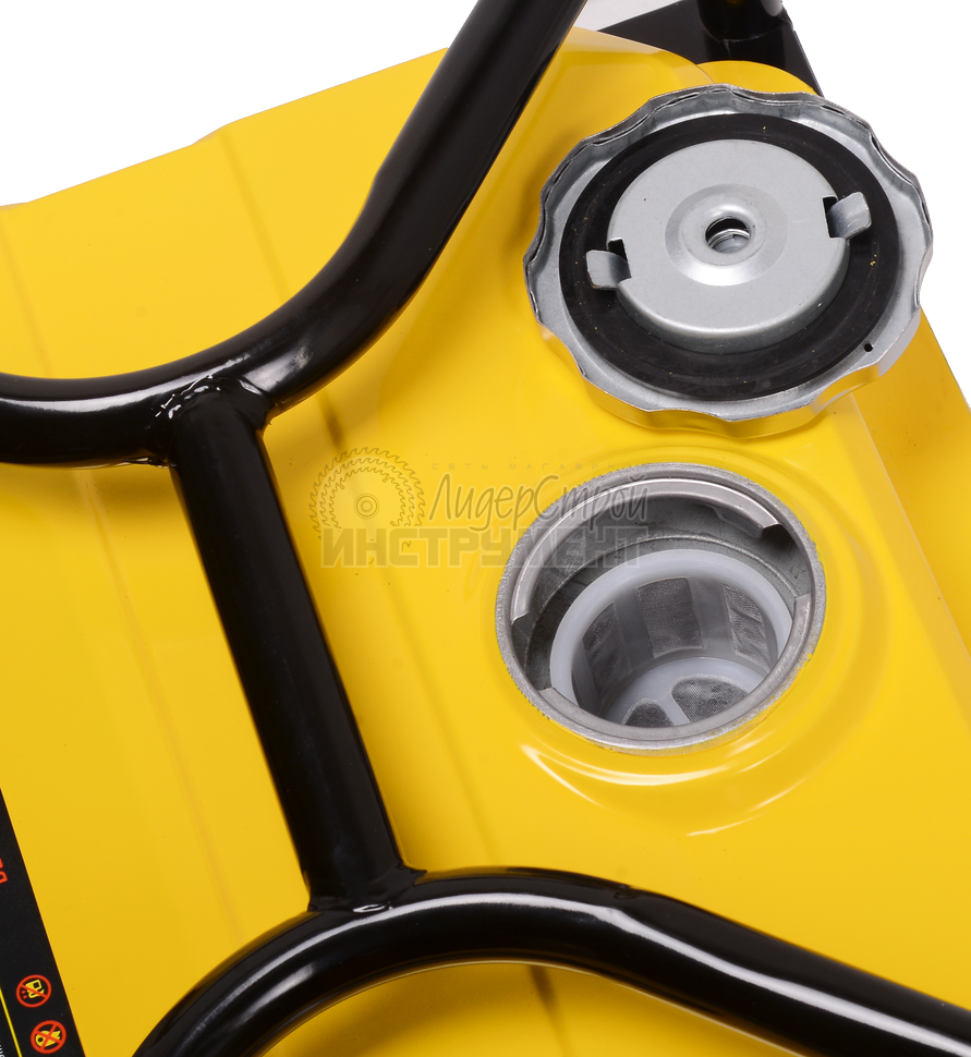 Мощность двигателя (3,3 кВт) и вместительный бак (15 л) позволяют работать более 10 часов подряд. На баке имеется указатель уровня топлива, что позволяет визуально контролировать его расход.
