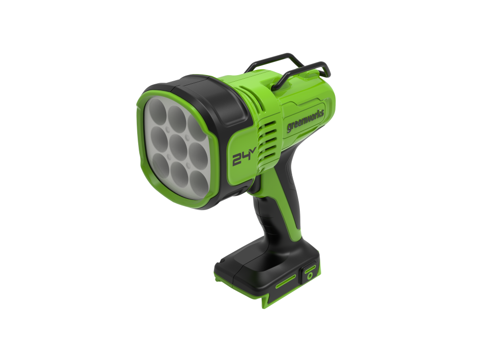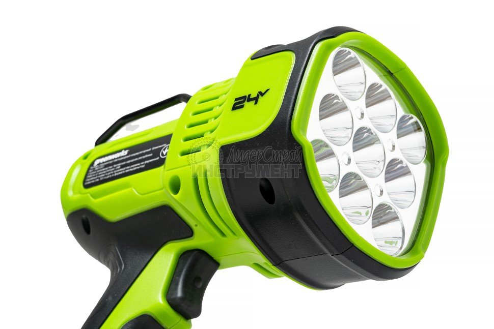 Фонарь-прожектор светодиодный аккумуляторный Greenworks (арт 3401207), 24V, без АКБ и ЗУ - исключительно яркий - 3000 лм светодиодный прожектор. Благодаря своей яркости может использоваться не только для освещения дороги, но и как мощный стационарный источник света.