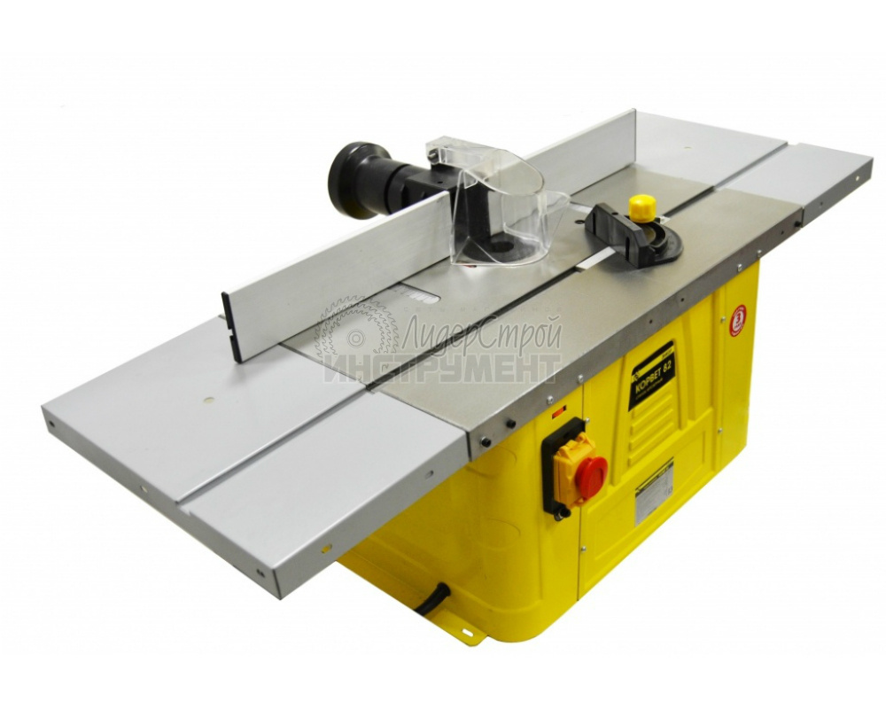 Благодаря приводу с ременной передачей станок устойчив к перегрузкам, работает с незначительным шумом и не создает вибраций. Используется для разнообразной деревообработки (в том числе сверление и шлифовка). Комплектуется фрезами 8 и 12 мм.