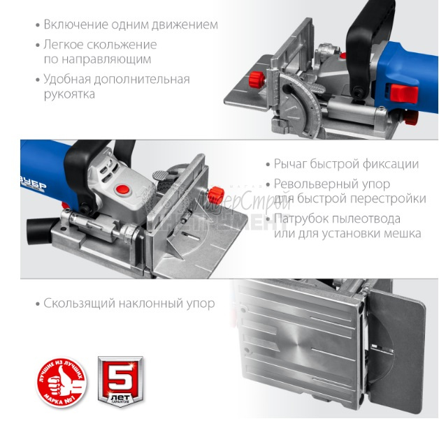 Фрезер ламельный позволяет точно выполнять пропилы под ламельные соединения. Настройка высоты и глубины ламели, а также угла наклона диска. Четкая работа благодаря легкому скольжению по направляющим