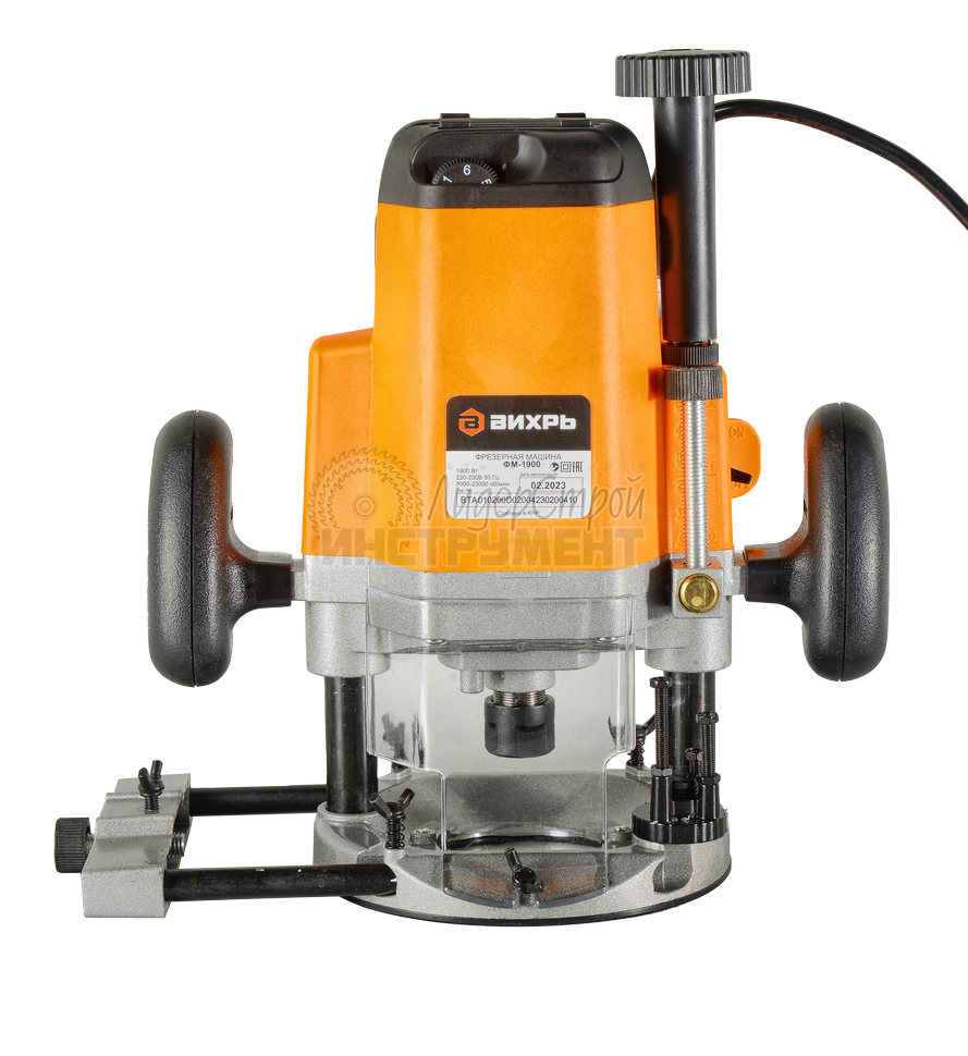 Фрезерная машина ВИХРЬ ФМ-1900 (фрезер) предназначена для выпиливания канавок, кромок, профилей и удлинённых отверстий в дереве, пластмассе и лёгких строительных материалах, а также для копировальной фрезеровки. Данный инструмент не предназначен для промышленного использования. Модель ВИХРЬ ФМ-1900 используется для фигурной обработки древесины на заданную глубину. Представленная машина является самой мощной в данной серии. Боковые прорезиненные рукоятки обеспечивают надёжный захват инструмента и снижение вибрации во время работы. Специальная шкала позволяет устанавливать необходимую глубину обработки заготовки. Прочная подошва с надёжными фиксаторами. Инструмент можно настроить под конкретную задачу путём изменения числа оборотов.