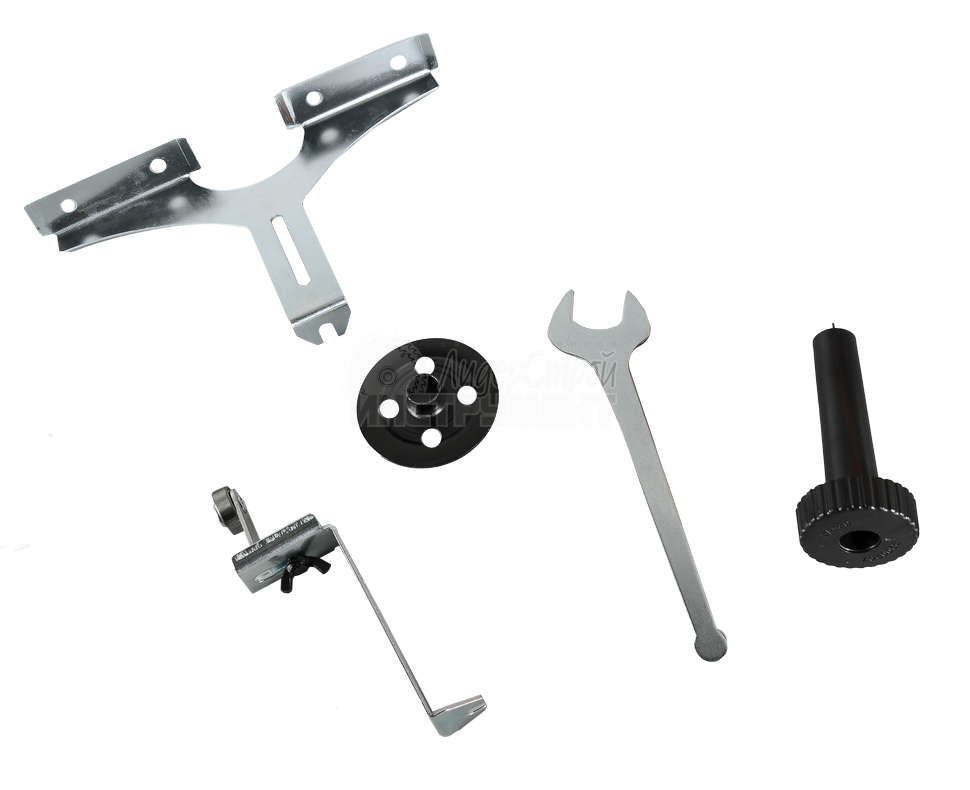 Боковой упор, пылеотводный патрубок, цанги 6/8/12 мм, ключ рожковый, переходная пластина, копир роликовый, стержень для крепления, инструкция,упаковка