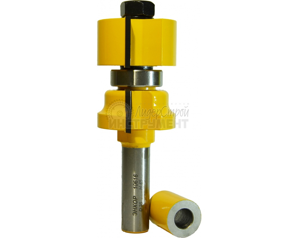 Упорный подшипник дает возможность использовать калевочные фрезы как прямолинейным , так и по криволинейным кромкам деталей без дополнительного оборудования.