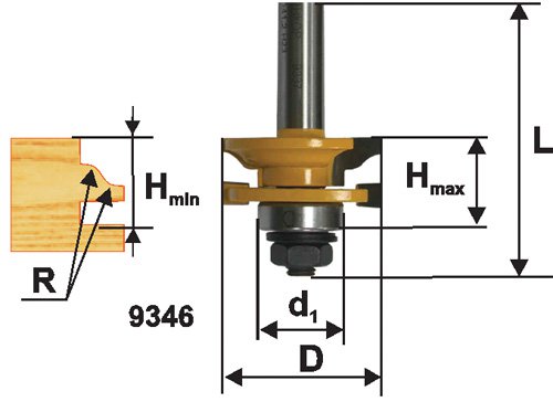 уменьшить количество времени, затрачиваемое на изготовление рамочного соединения. Наличие в наборе фигирейной фрезы с двумя ножами позволяет получать на филенке шип