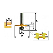 Фреза применяется для изготовления паза по кромке столярного изделия (столешниц, подоконников, элементов корпусной мебели) с целью крепления декоративных кромочных элементов, а также для изготовления шипового соединения.