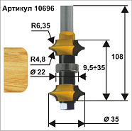 Фреза кромочная калевочн.регулир.ф35мм r6.35/4.8 хв12мм ЭНКОР