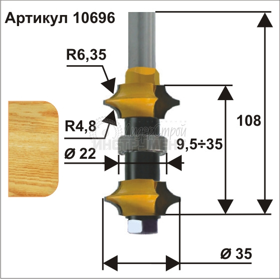 Фреза кромочная калевочн.регулир.ф35мм r6.35/4.8 хв12мм ЭНКОР (отзывы)